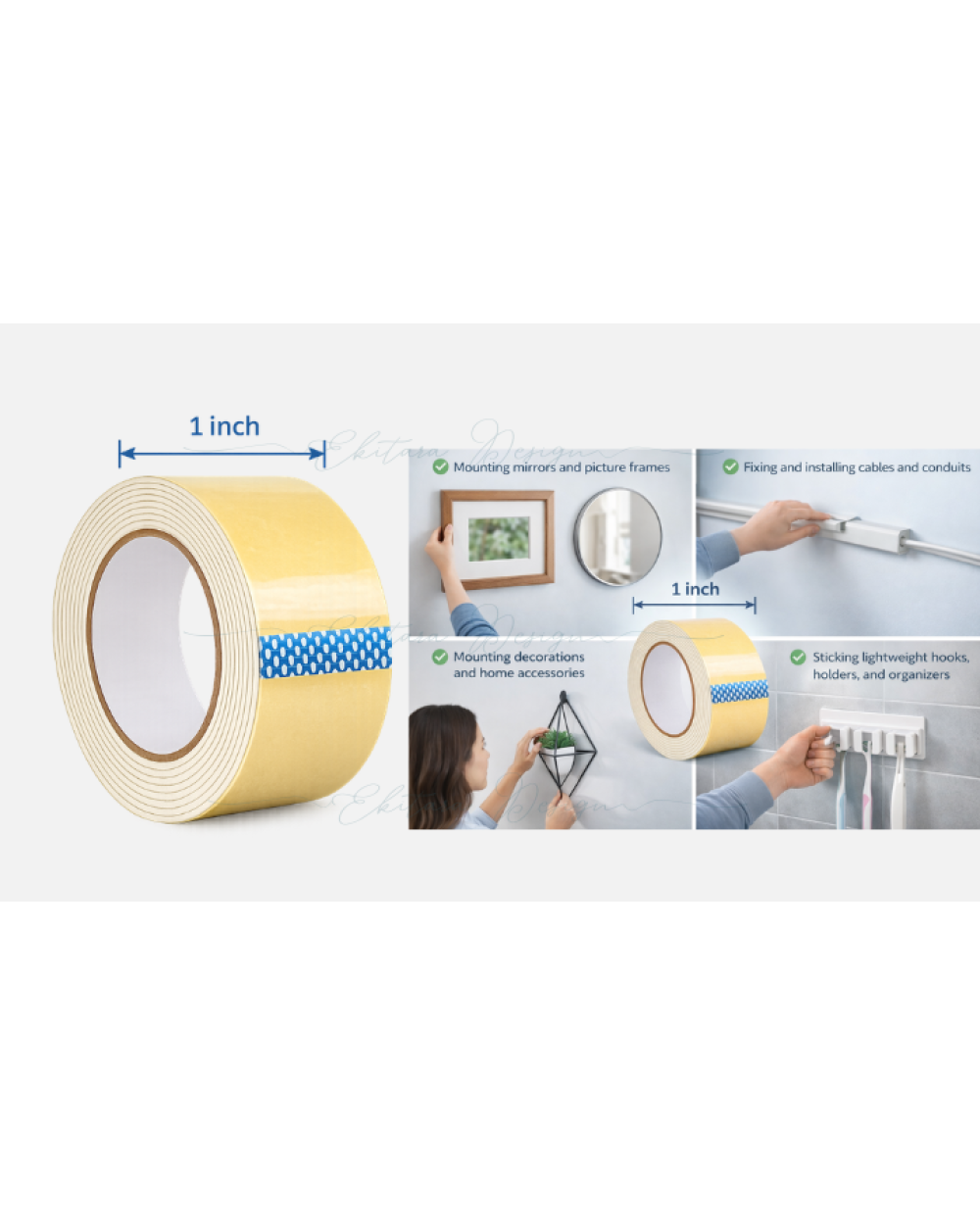 - Double Sided Foam Tape 1-Inch is a high-performance, multipurpose adhesive tape ideal for both industrial and household use.
